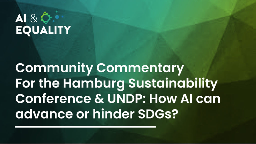 Input for the Hamburg Sustainability Conference & UNDP on How AI can advance or hinder SDGs. Our comment focuses on the three Ps of People, Planet, and Partnership.